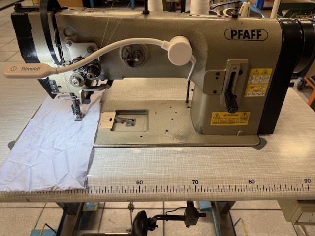 Macchina 2 aghi interasse 4,8 mm trasporto punta ago con aghi sganciabili per tessuto trama ordito camiceria etc etc. Completa di sostegno tavolo e motore Efka V380 3ph regolata con aghi che si fermano in basso